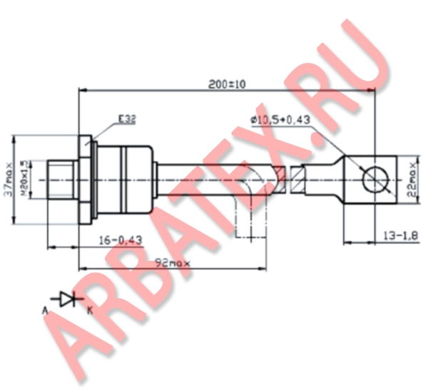 Масса диода не более 298 г.
