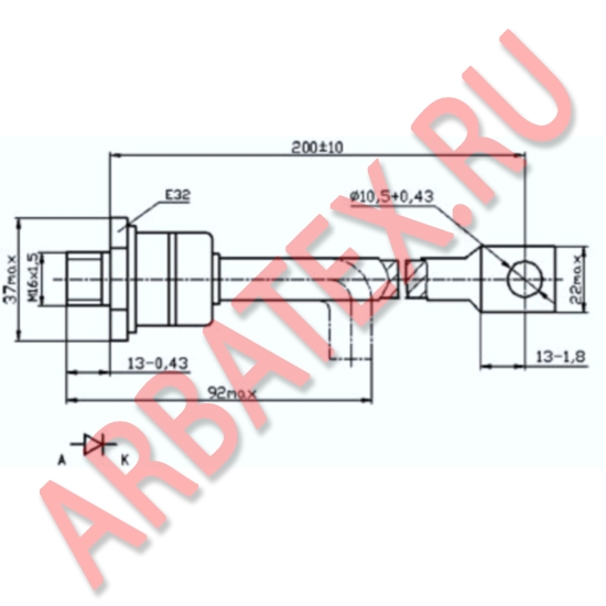 Масса диода не более 290 г.