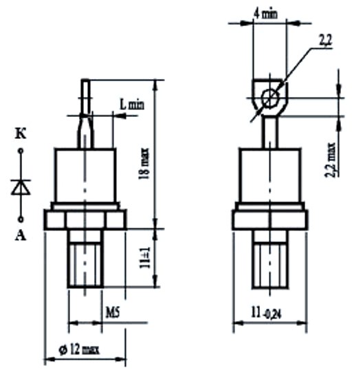 • Iпр ср макс, А - Максимально допустимый средний прямой ток