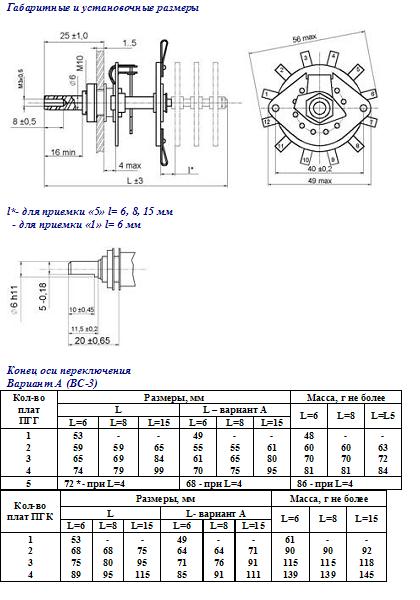 Для переключателей, имеющих ось с конической лыской, после цифры, обозначающей расстояние между платами, буквенное обозначение варианта оси отсутствует.