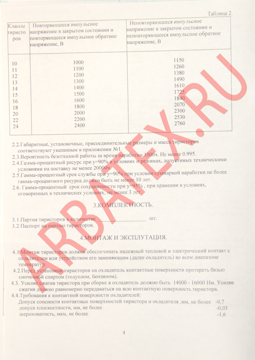 Масса тиристора не более 6 г.