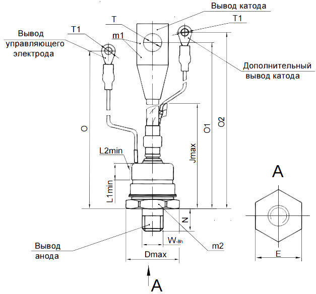 Масса тиристора не более 6 г.